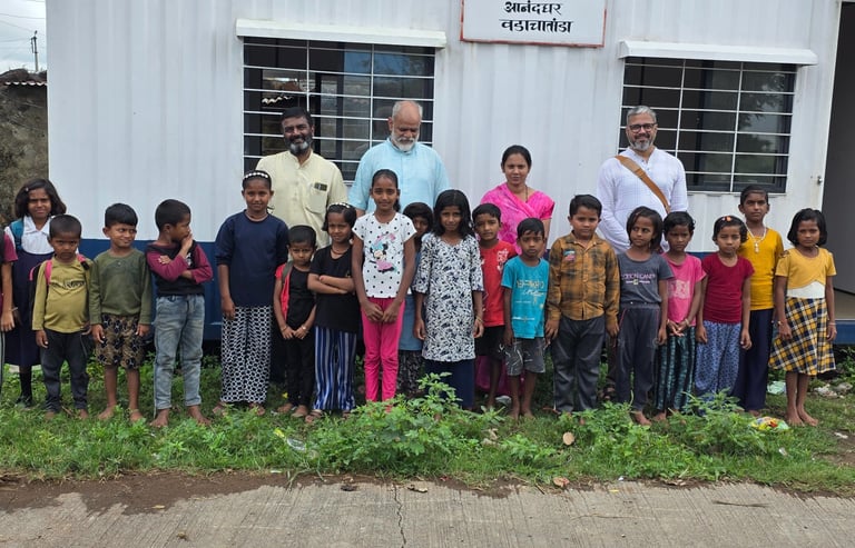 Anand-Shala was started for these kids and also families. Because these places are remote, the school is organized in containers adjusted to classroom setup. The community language for these tribes is Lambadi, Gorboli or Banjari; which is prominently used, and the kids face problems in understanding Marathi or any other language. To overcome a language barrier, local men / women (prominently women as men go to work) are trained to conduct classrooms. These schools typically take place during morning and evening hours on their respective locations. The coordinators work across the schools to support on trainings, school supplies, student support and organizing special events.